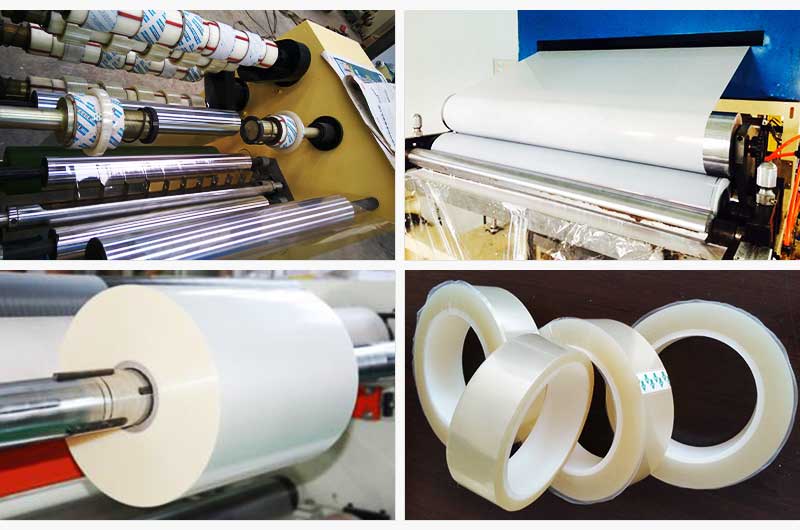 4.一機多用:該機除能生產常規不干膠帶外,還可生產各類寬膠帶、窄膠帶、透明膠帶、彩色膠帶、印字膠帶(可同時印出三種不同顏色效果)等多種膠帶